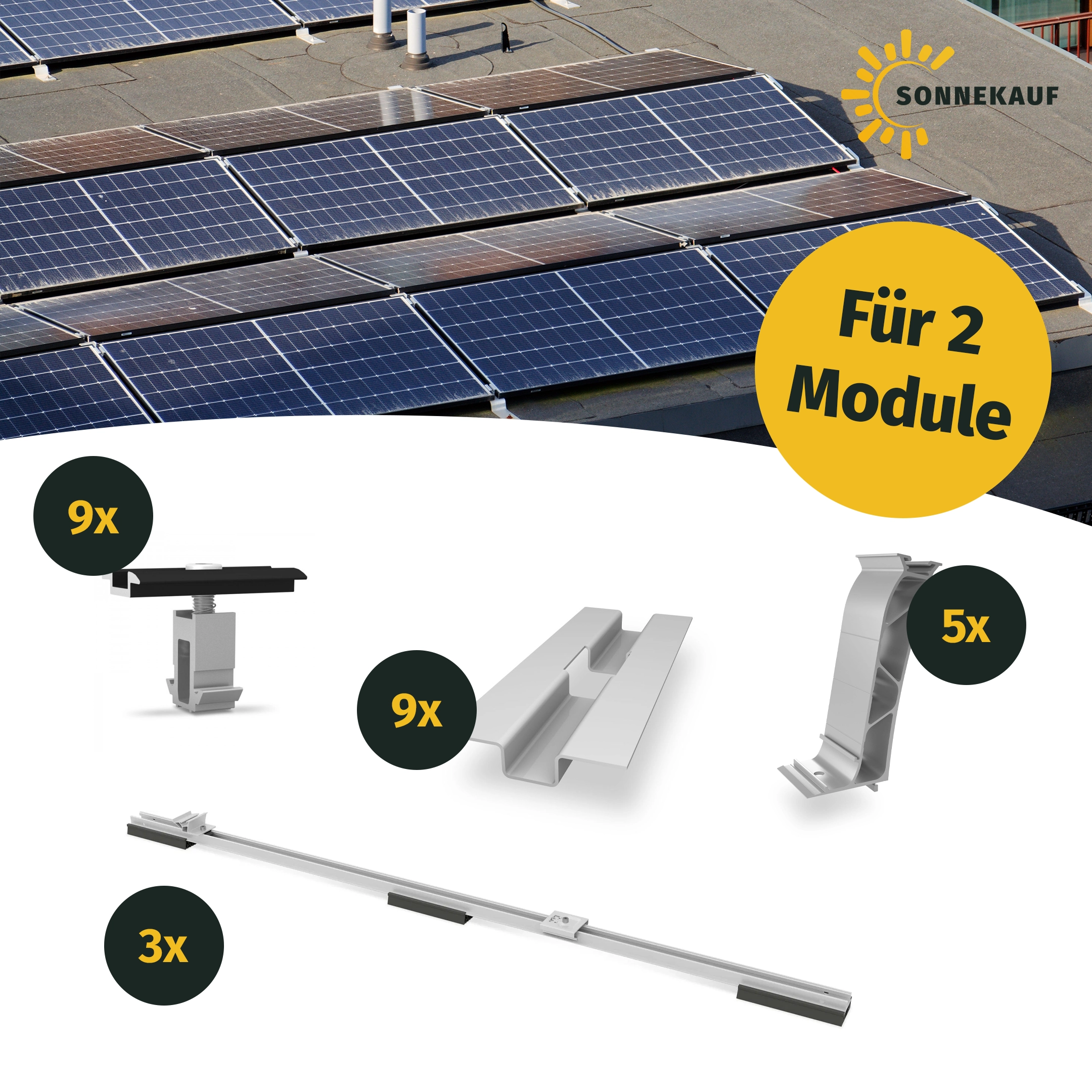 Alle notwendigen Bauteile für eine schnelle und sichere Montage sind im Lieferumfang enthalten. Das System ist mit gängigen gerahmten Modulen kompatibel und besteht aus hochwertigem Aluminium, Edelstahl und EPDM. Dies garantiert eine lange Haltbarkeit, hohe Stabilität und maximale Wetterbeständigkeit.