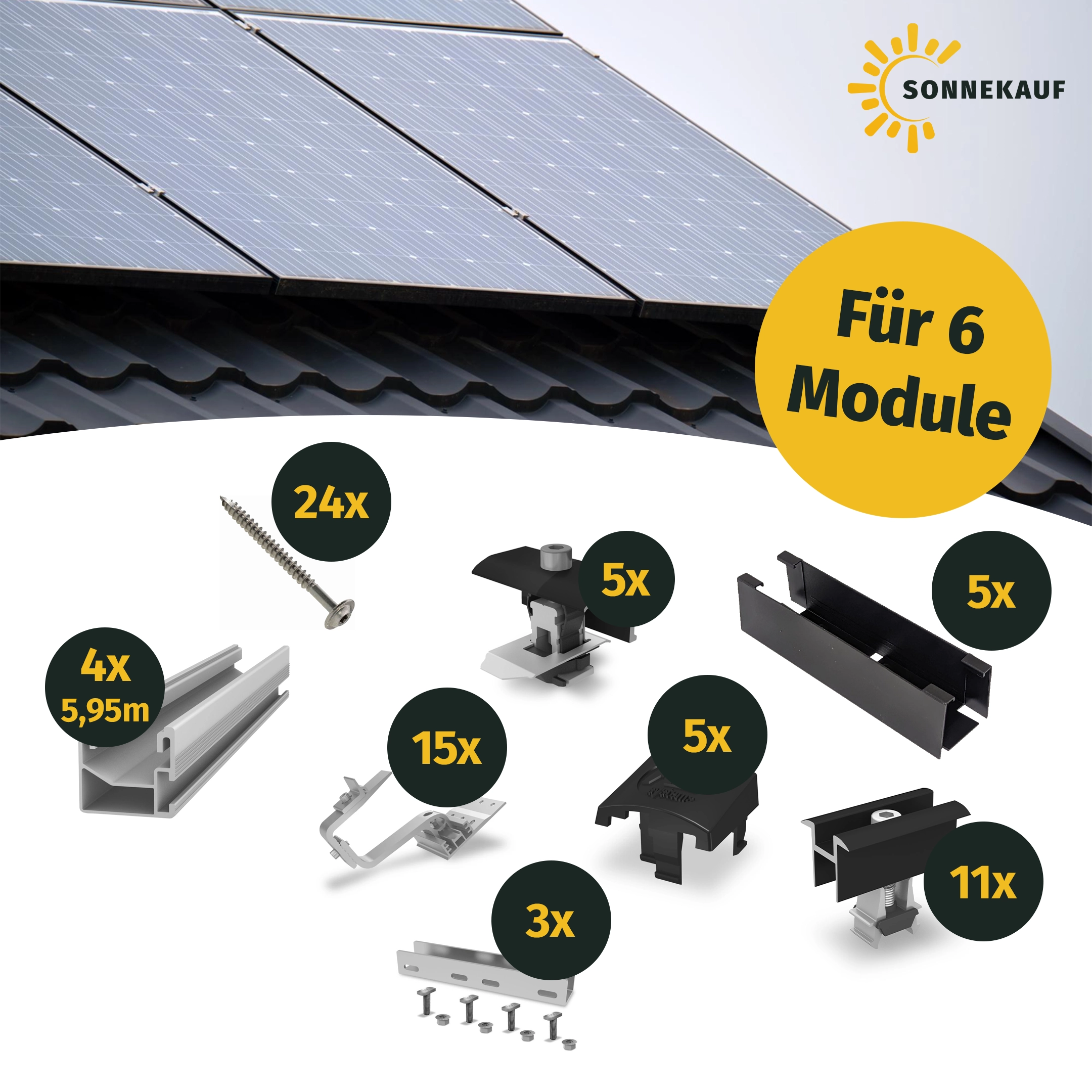 Konzipiert für Schrägdächer mit Ziegel- oder Pfanneneindeckung, bietet das Set eine einfache, schnelle und sichere Installation. Die Modulreihen können flexibel mit Systemkomponenten wie Dachhaken, Montageschienen, Schienenverbindern und Mittelklemmen erweitert werden, um eine optimale Anpassung an Ihre Dachfläche zu ermöglichen.